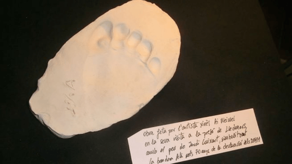 Afirmativo, el artista, disidente del régimen chino, pero partidario a lo que se ve del liberticida nacionalismo en Cataluña, visitó al golpista Cuixart en Lledoners por cuenta de Òmnium (Òdium) Cultural, es decir, a cargo del contribuyente por tratarse de una entidad hipersubvencionada, y tuvo la feliz e inspirada ocurrencia de hacer un molde de la huella pedicular de nuestra versión nativa del Mahatma Gandhi. Dicha huella habría de servir para ilustrar de manera simbólica la conmemoración de la Declaración de los Derechos del Hombre… a dar golpes de Estado contra democracias homologadas. Lo suyo habría sido encajar esa huella en el capó, a modo de pedestal, de un coche-patrulla de la Guardia Civil, desde donde el interfecto se dirigió, megáfono en mano, a las masas enfervorecidas. Se dice que Ai Weiwei ha sido “fichado” (me excusarán de decir en qué consiste el fichaje, pero no es un secreto que todo fichaje conlleva una “ficha”) por la trama de acción exterior de la Generalidad de Cataluña. Tan singular obra ha sido expuesta en el Museo de la Terracota sito en La Bisbal del Ampurdán y opta a ingresar, con todos los pronunciamientos a favor, en el más selecto catálogo de maravillas escultóricas junto a los “davides” de Donatello y Miguel Ángel y al Perseo de Cellini.
